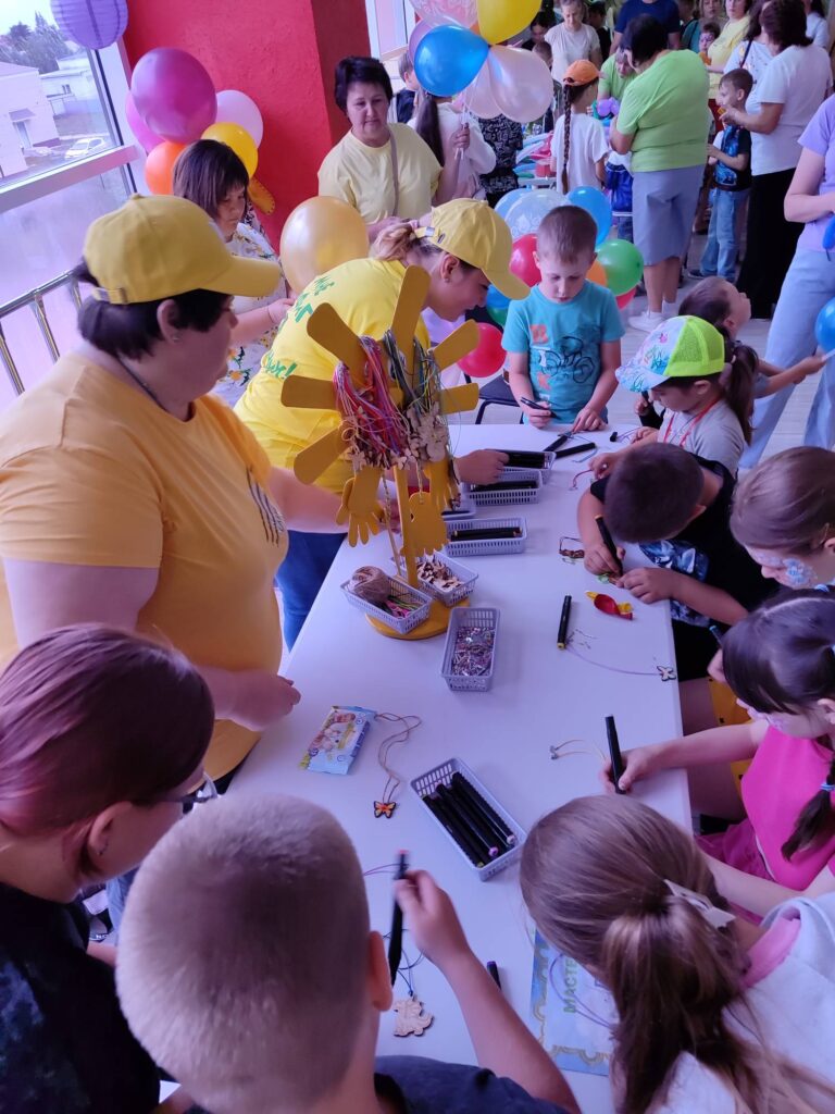1 июня педагоги нашего детского сада приняли участие в районной развлекательно — игровой программе, посвященной Дню защиты детей. В ходе мероприятия была организована творческая площадка, где маленькие гости праздника и их родители смогли самостоятельно изготовить летние сувениры и поиграть с мыльными пузырями. Работа творческой площадки не оставила никого равнодушным, о чем говорят восторженные взгляды, улыбки детей и их родителей.