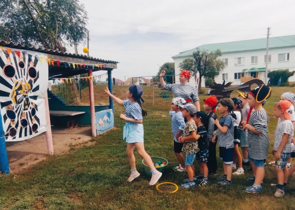 В нашем детском саду прошло спортивное мероприятие «В поисках пиратских сокровищ».По сценарию дети отправились в путешествие на поиски пиратского клада. Чтобы добраться до клада, участникам игры необходимо было преодолеть препятствия: добраться на берег безлюдного острова, спасти корабль,участвовать в большой рыбалке, попасть ядром в цель и наконец, — отыскать заветный сундук с сокровищами. В процессе игры воспитанники совместно с педагогами последовательно двигались по намеченному маршруту, где пройдя задания — получали подсказки и кусочек затерянной карты. Дети решали различные спортивные задания, чтобы отыскать клад. Ребята проявляли ловкость, выносливость, сообразительность.